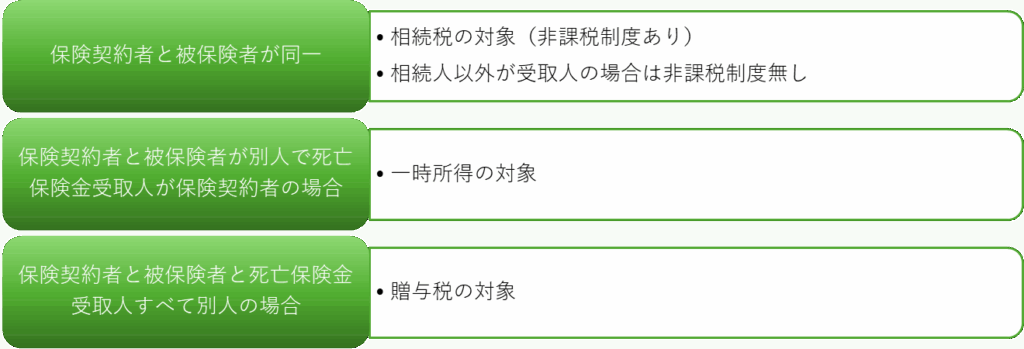例:契約者=夫、被保険者=妻、受取人=夫 → 一時所得